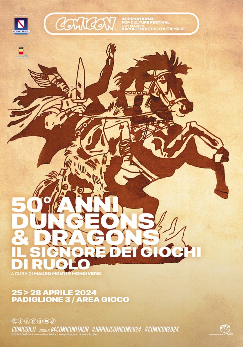 - 50th anniversary of Dungeons & Dragons. The Lord of RPGs: For 50 years of Dungeons & Dragons, COMICON celebrates with a exhibition from the “Red Box” to modern editions. Exhibition of rare manuals, adventures and merchandising, on a historical journey.