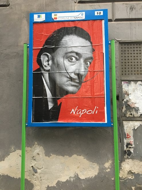 A mix of suspense and mystery surrounds the city of Napoli and the Neapolitan citizens. In fact numerous posters they have been set up in various places in the city. On a bright red background and accompanied only by the writing "Naples" appears the image of the famous and very famous artist Salvador Dali.